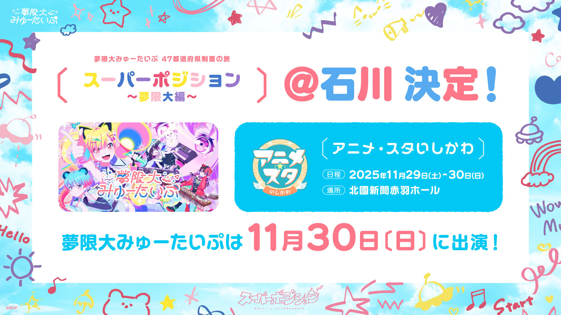 2025年11月30日(日)開催予定のアニメ・スタいしかわ会場にて夢限大みゅーたいぷによるCDお渡し会の開催が決定しました!