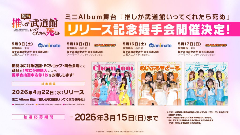 ミニAlbum 舞台『推しが武道館いってくれたら死ぬ』のリリースを記念して、「リリース記念握手会」の開催が決定!