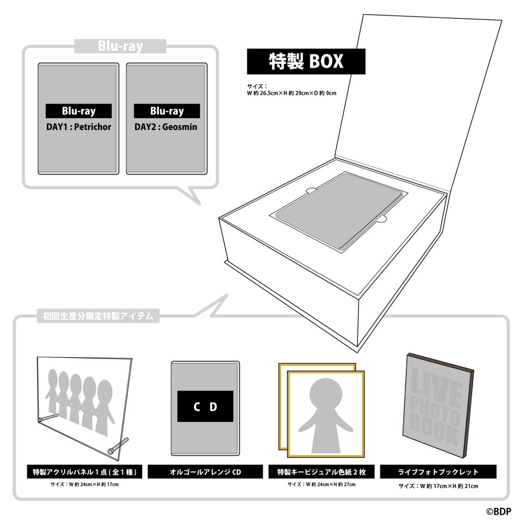 本商品は、【DAY1 : Petrichor】と【DAY2 : Geosmin】の両パッケージと、メモリアルグッズを特製BOXへ収納した商品となります。